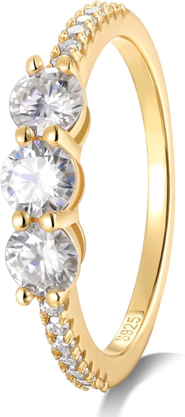 Three Stone Engagement Rings for Women, 1-2ct Radiant/Round Moissanite Ring Sterling Silver 14K Gold Plated Emerald Cut 3 Stone Ring VVS Diamond Promise Rings Gift Jewelry for Lover Wife Size 4-10