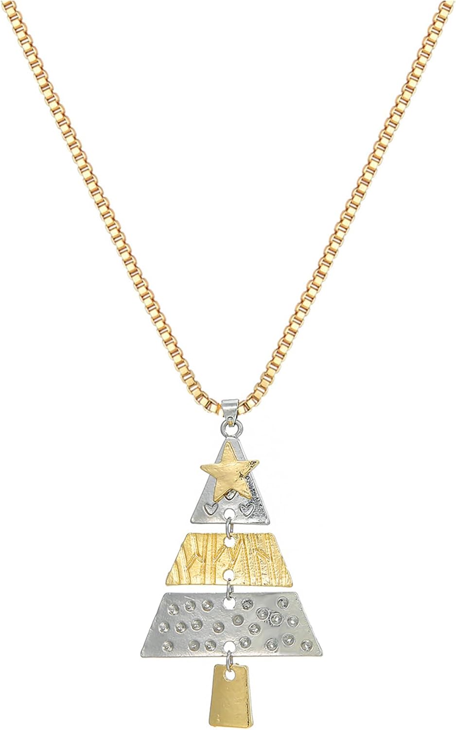 Christmas Necklace for Women Christmas Tree Star Pendant Necklace Xmas Tree Necklace Jewelry for Festival New Year Party