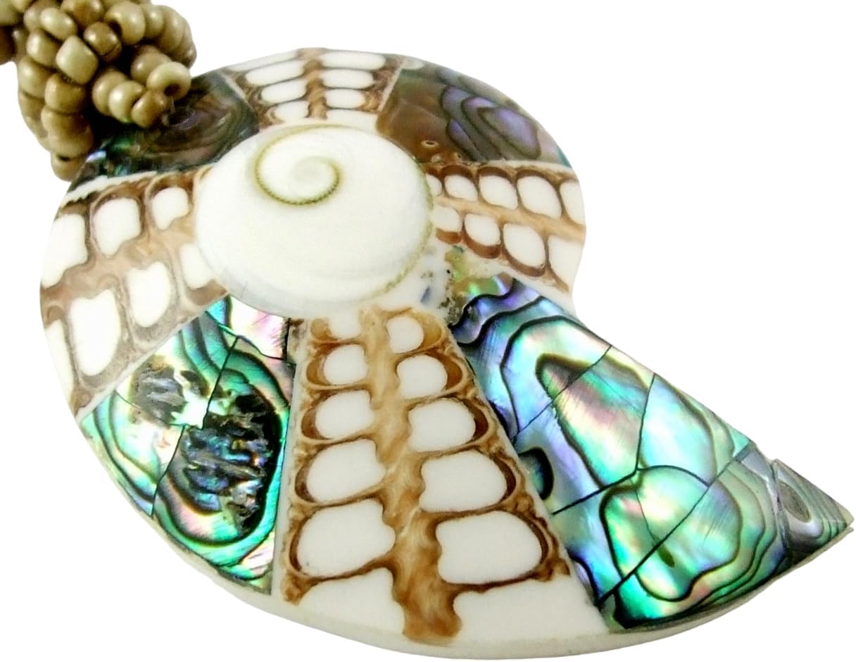 Natural Paua Abalone Shell, Cone Shell, Shiva Eye Pendant 18.5 Inches Beads necklace Handmade Jewelry BA104