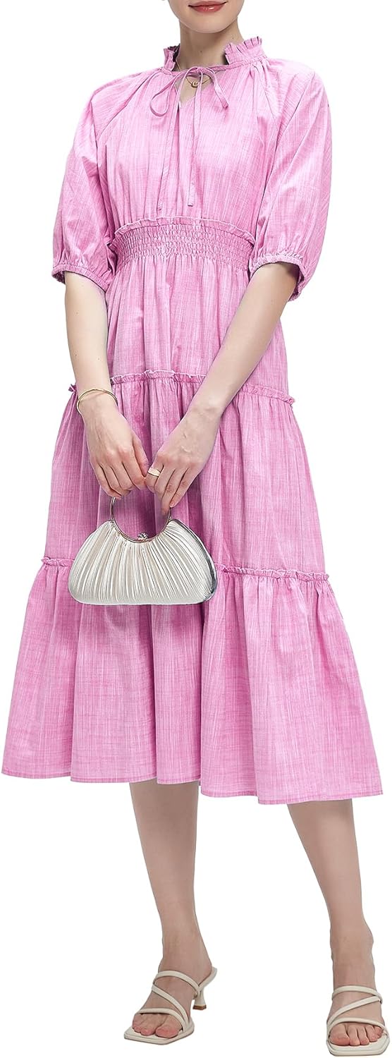 Kedera Womens Short Sleeve Midi Dress 2025 Trendy Maxi Dress with Puff Sleeve Flowy Elegant Casual Long Ruffle Sundress
