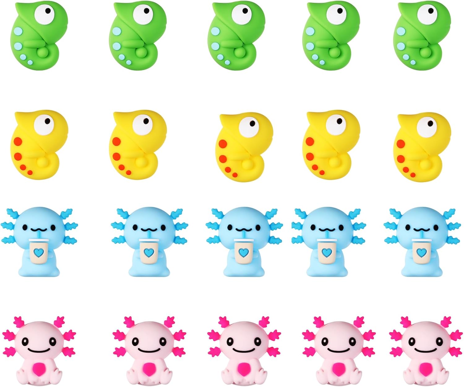 20PCS 4 styles Chameleon and Salamander Silicone Beads Set for Keychains, Pens, Lanyards, and DIY Crafts