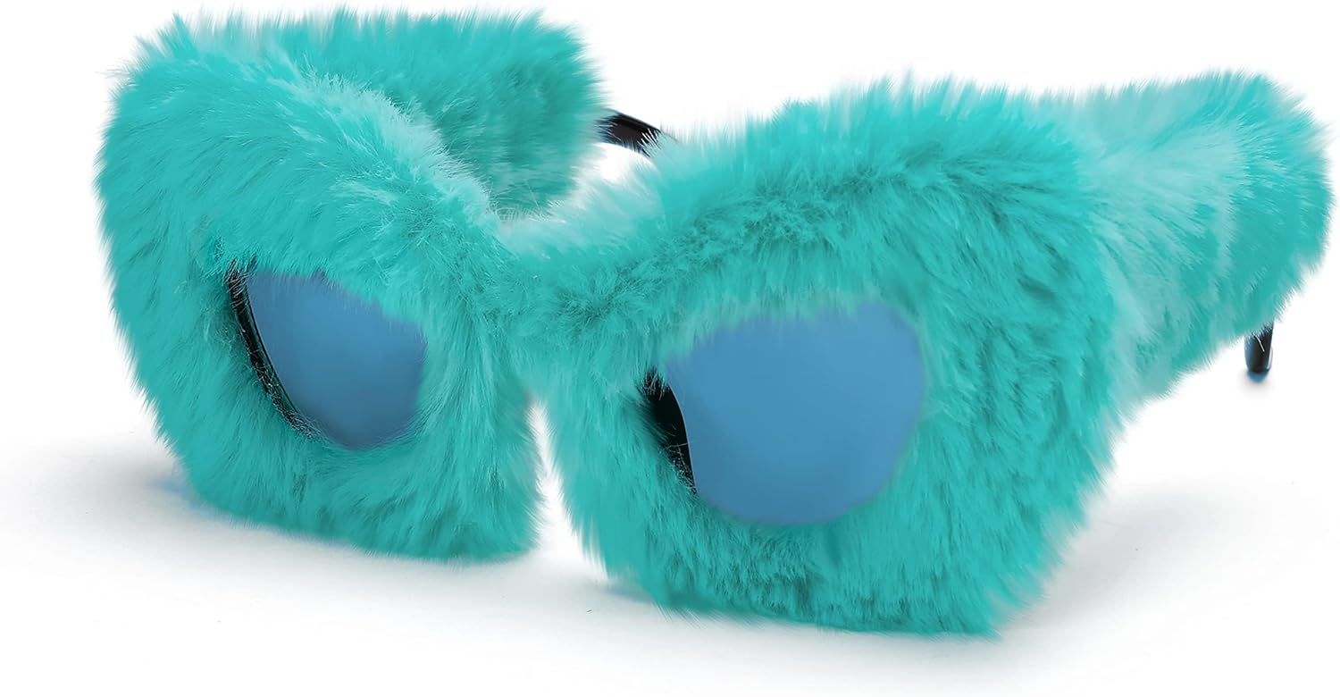 FEISEDY Women Plush Fuzzy Cat Eye Sunglasses Punk Soft Velvet Shades Ladies Handmade Party Masquerade Eyewear B2877