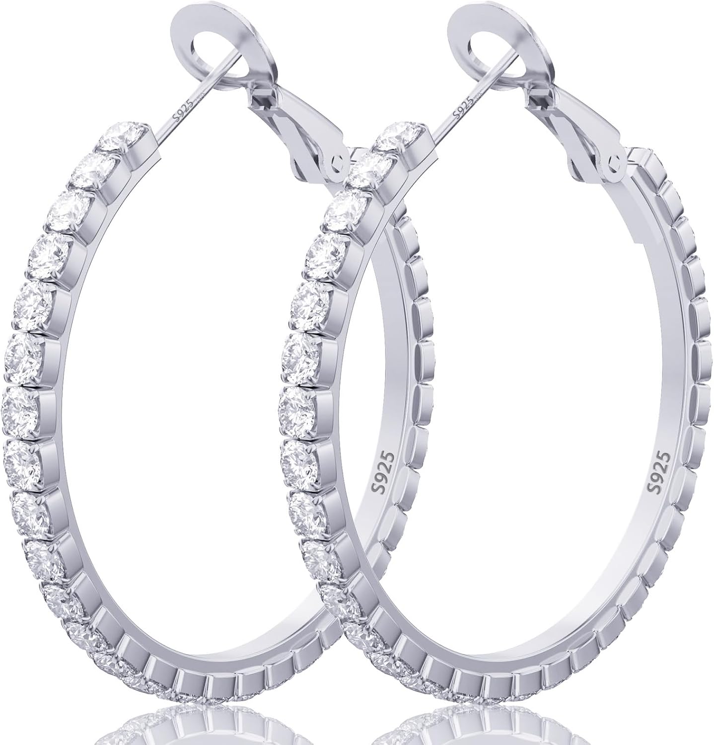 Rhinestone Hoops Earring for Womens Large Big 925 Sterling Silver Hoop Earrings With Diamond Medium Silver or Gold Earrings Gifts Non Tarnish Hypoallergenic Lightweight 30 40 50 60 70mm