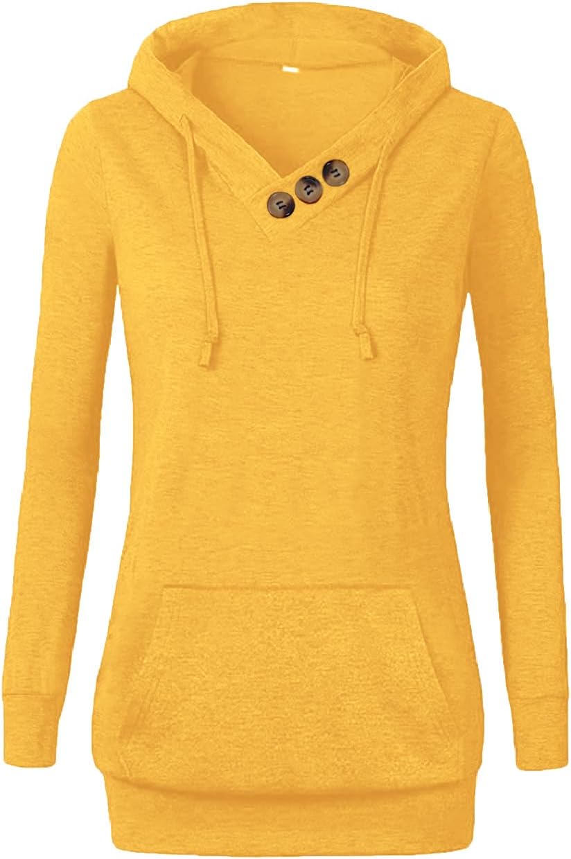 VOIANLIMO Women's Sweatshirts Long Sleeve Button V-Neck Pockets Pullover Hoodies