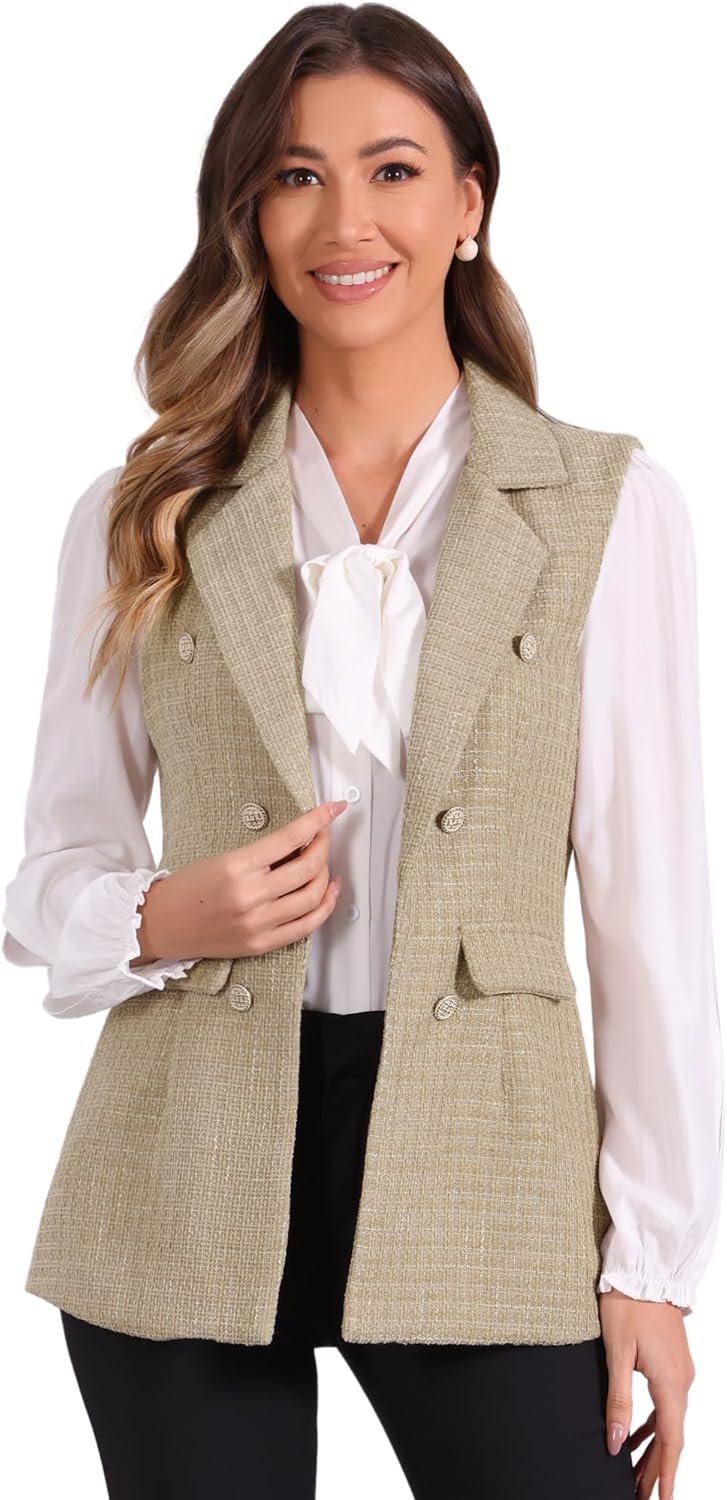 Allegra K Women's Vintage Tweed Blazer Vest Open Front Plaid Sleeveless Cardigan Casual Work Vest Jacket