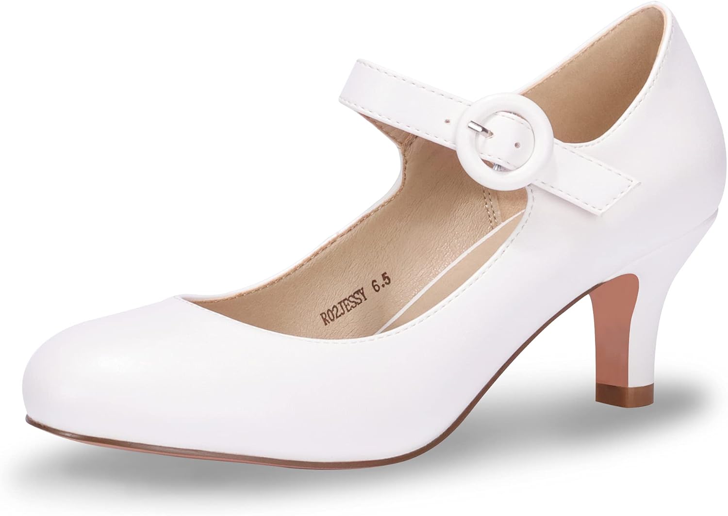 IDIFU Women's Jessy Dress Mary Jane Shoes Low Kitten Heels Closed Round Toe Office Work Wedding Pumps