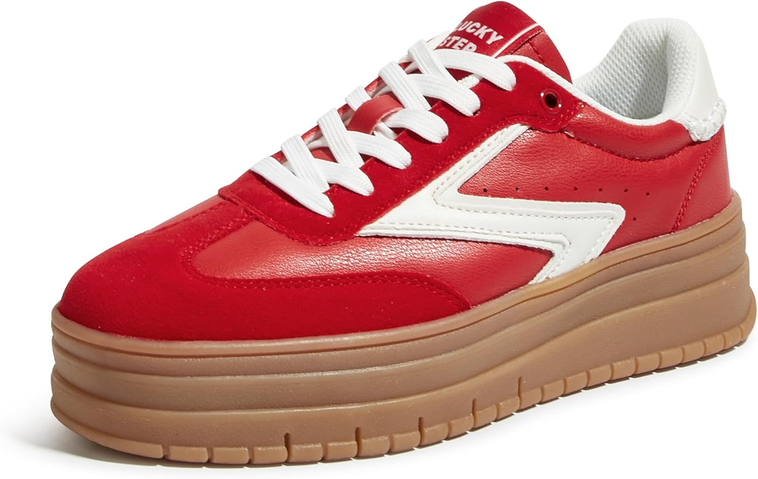 LUCKY STEP Women's Platform Sneakers Gum Sole Suede Casual Classic Retro Rubber Thick Sole Trendy Fashion Tennis Walking Shoes