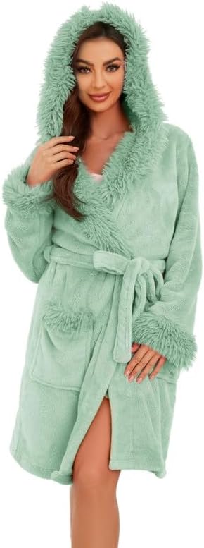 LYCY Women Hooded Plush Short Robe Soft Warm Fleece Bathrobe Fluffy Cute Spa Robe