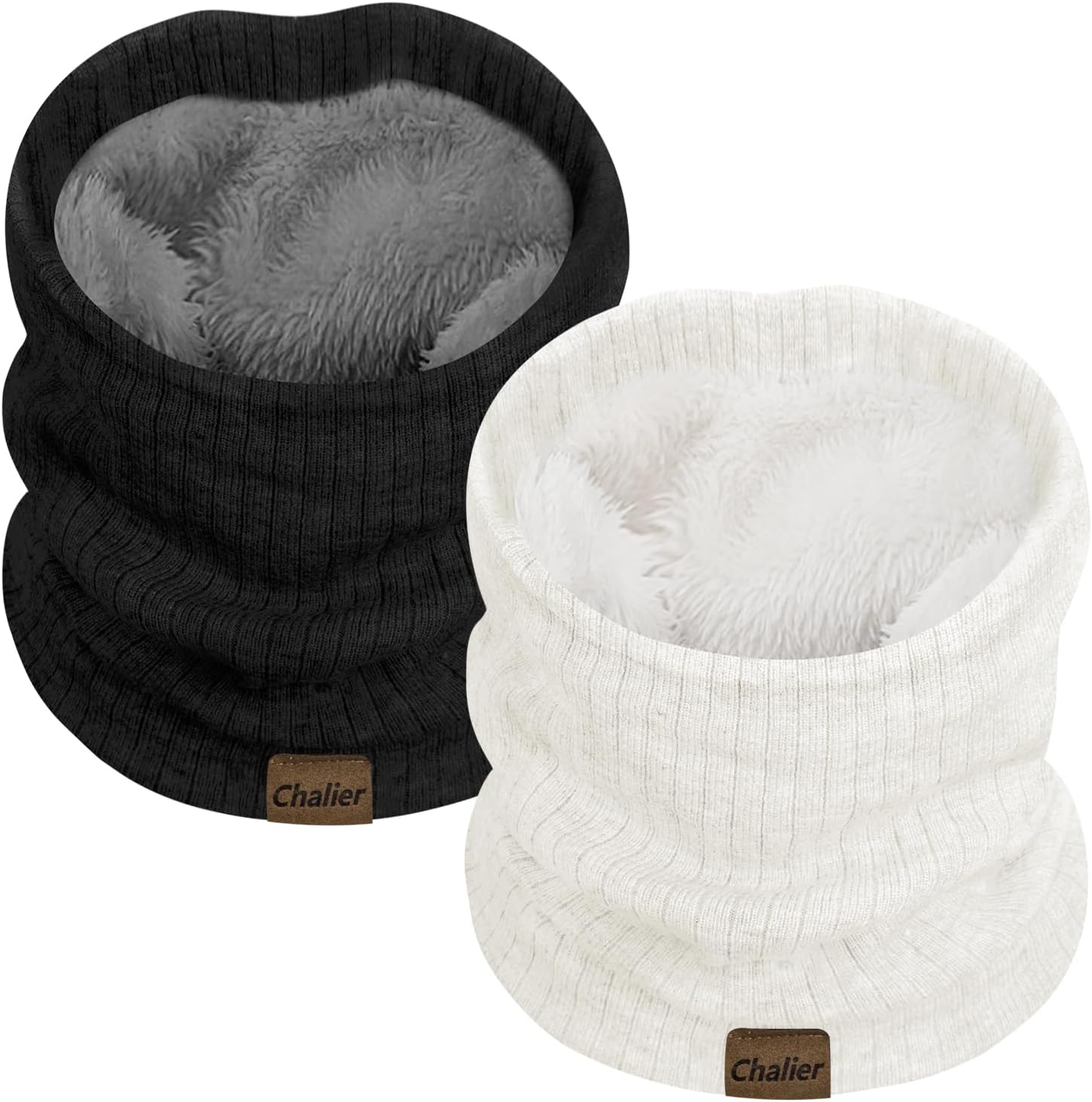Chalier Infinity Scarf Winter Double-Layer Neck Warmer Knit Fleece Lined Circle Loop Scarves