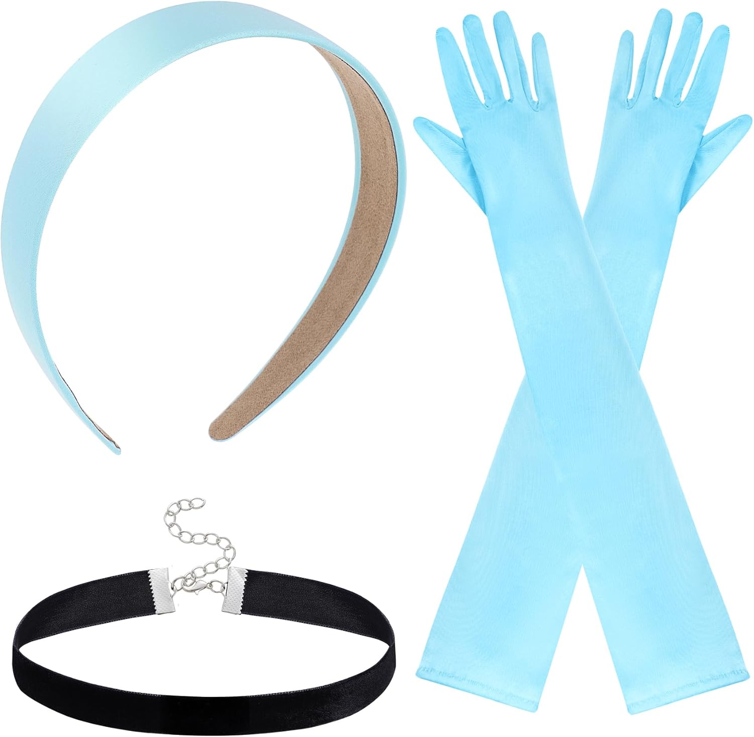 obmwang Women Princess Costume Accessories Princess Headband Long Gloves Choker Set for Halloween Cosplay Party