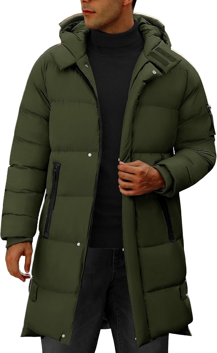 HEEKPEK Men's Hood Puffy Quilted Jacket Winter Warm Long Puffer Coat Windproof Full Zip Thicken Outerwear with 4 Pockets