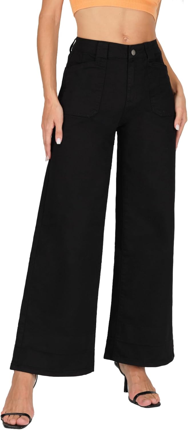 Wide Leg Jeans for Women High Waisted Stretchy Baggy Casual Denim Pants