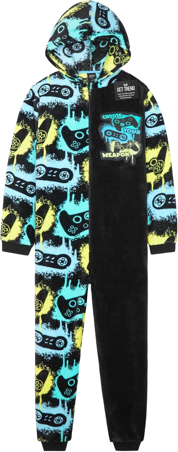 Get Trend One Piece Pajamas for Boys, Teens Fleece Loungewear Soft Jumpsuit Sleepwear Cozy Nightwear Gifts for Boys