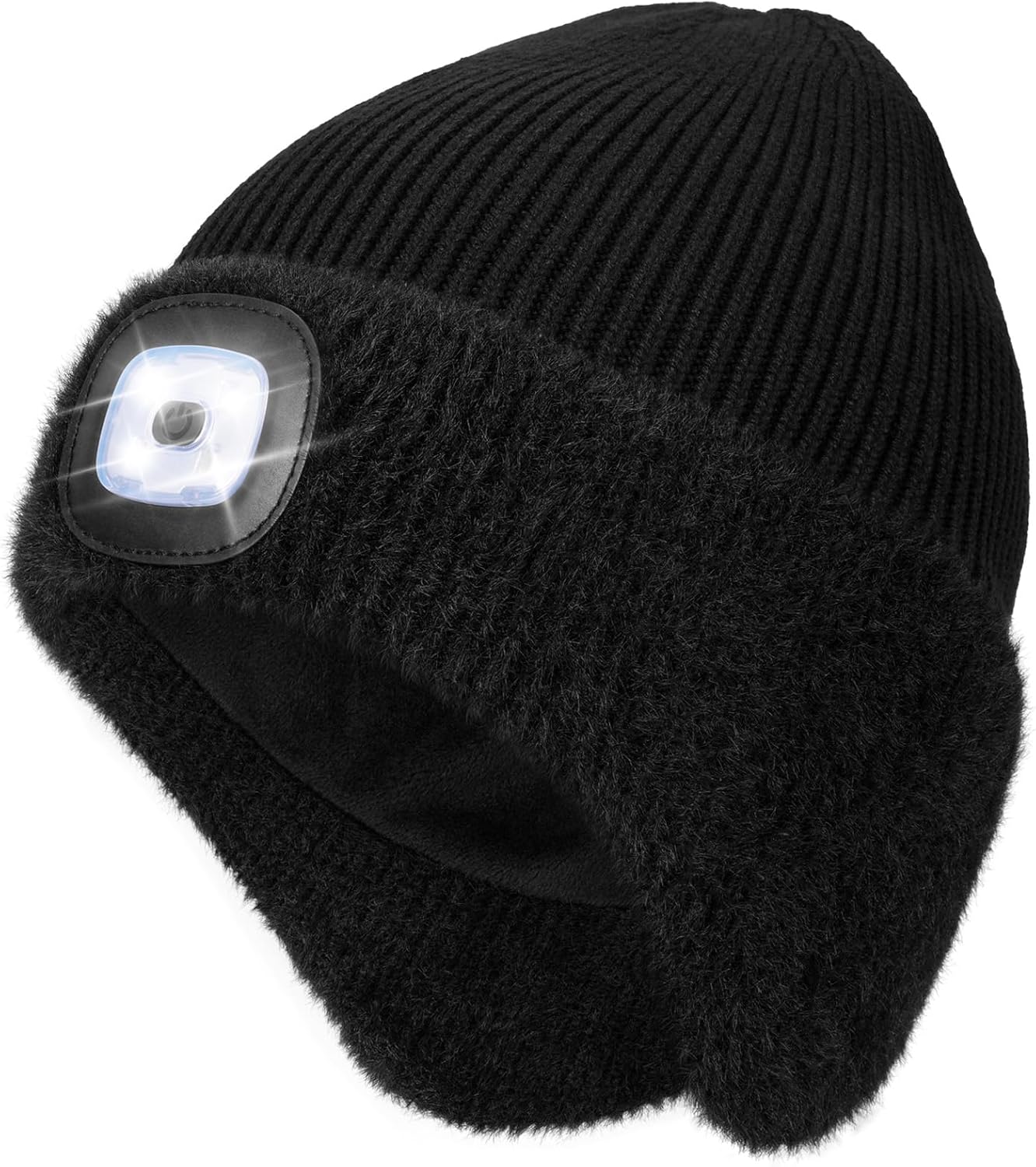 MELASA Winter Fleece Line LED Beanie with Earflap, USB Rechargeable Outdoor Warm Hats with The Light Gifts for Men