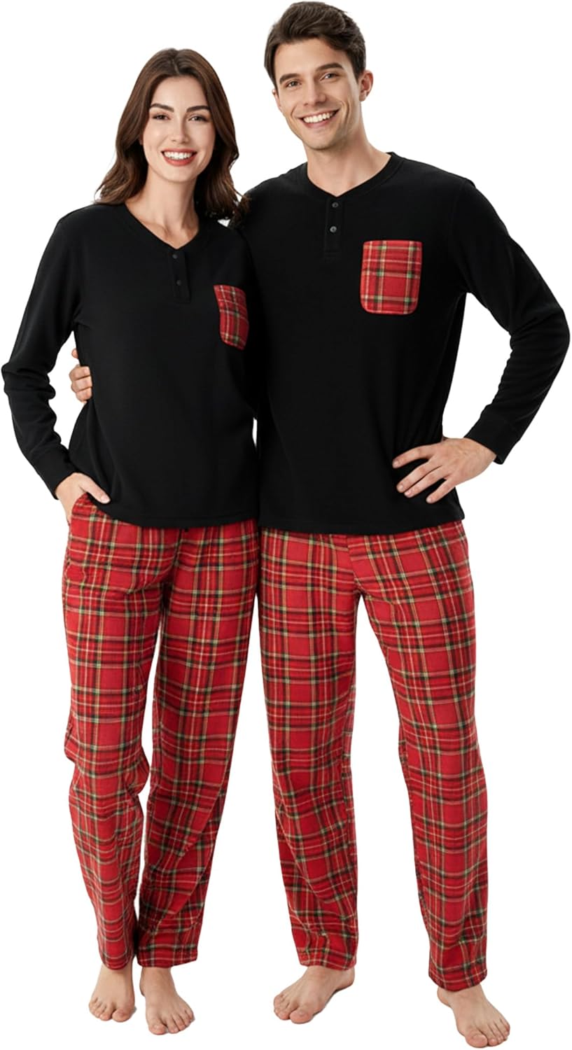 DAVID ARCHY Cozy Christmas Pajamas for Couples Ultra Soft Warm Fleece Winter Pjs Sets Men Women Plaid Loungewear with Pockets