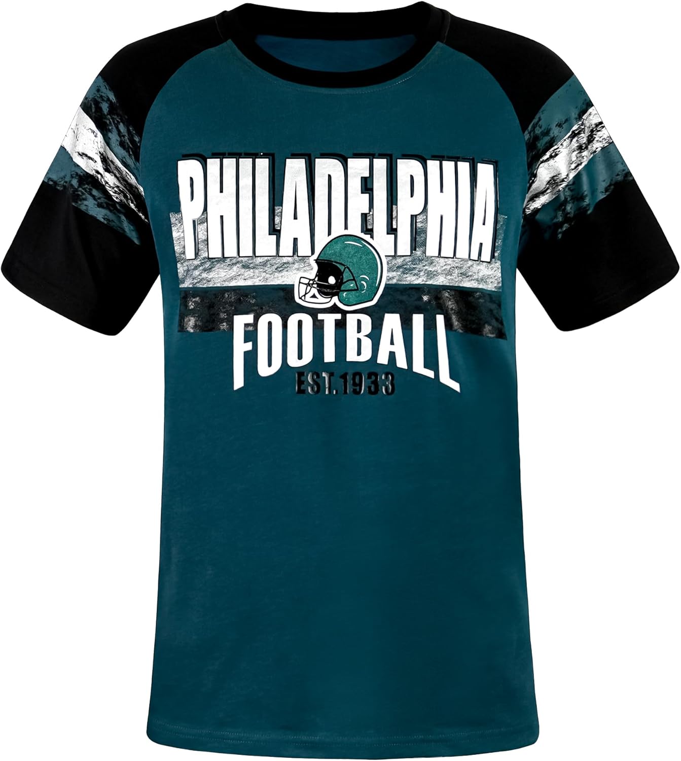 Mens City Football Fans Athletic Arm Stripe Tee Raglan Tee T-Shirts - Midnight Green & Black