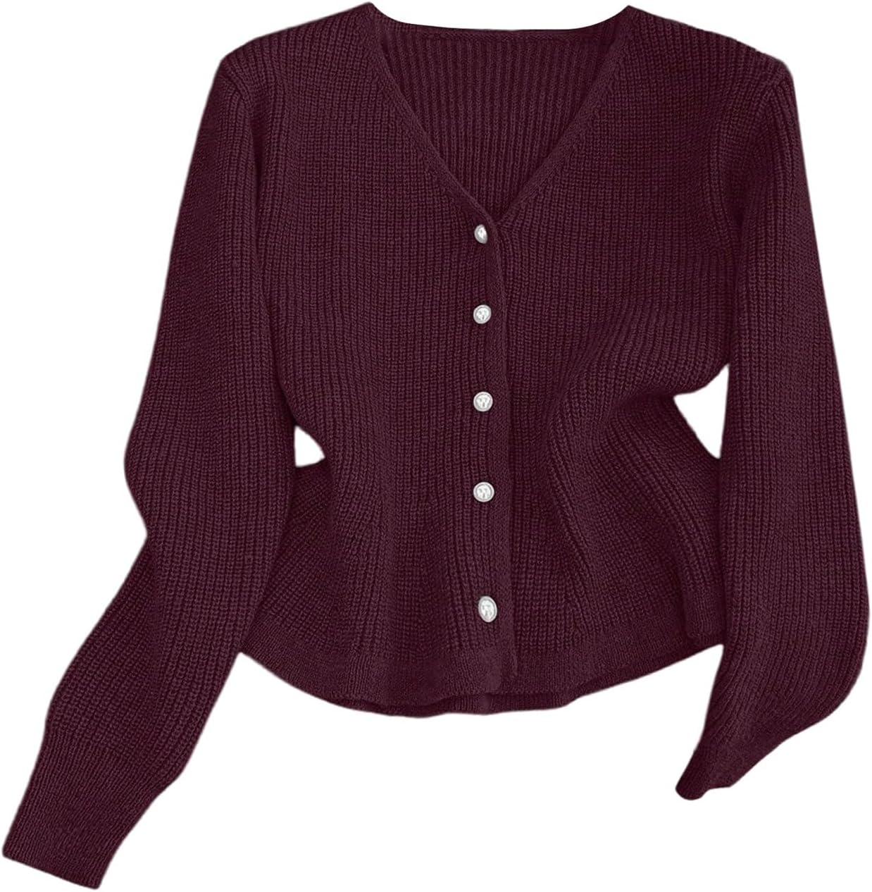 Verdusa Women's Dressy Casual Pearl Button Up Cardigan Peplum Sweater Ruffle Cinched Waist Knit Outerwear