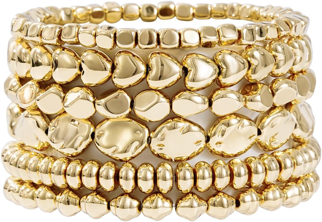 Gold Plated Beaded Bracelets for Women Trendy, 14K Gold Plated Stack Cross Pearl Gold Plated Bead Stretch Bracelets Set Elastic Hypoallergenic Bracelets Jewelry Gifts