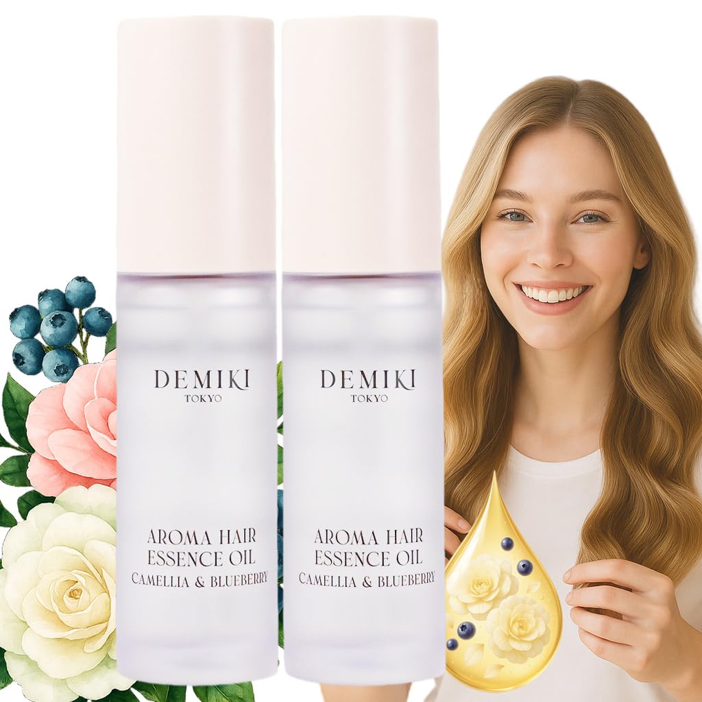 DEMIKI Japanese Hair Oil - Hair Oil for Frizzy and Damaged Hair -Hydrating Hair Oils - Frizz Control & Heat Protection, Curly Hair - Camellia&Blueberry 1.18 fl.oz-2pcs