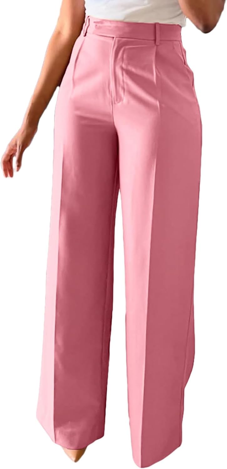Unybwonn Women Wide Leg Dress Pants High Waisted Straight Leg Business Slacks Work Pants Casual Button Down Trousers