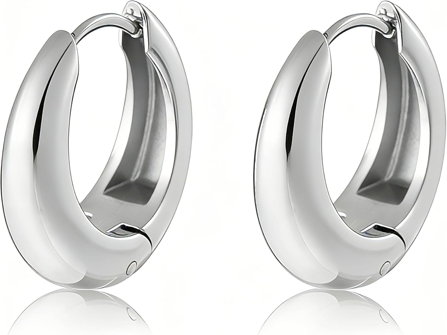 Chunky Small Hoop Earrings for Women 14mm/16mm/19mm Stainless Steel Huggie Earrings Everyday Jewelry Gift for Wife Mom, with Gift Box