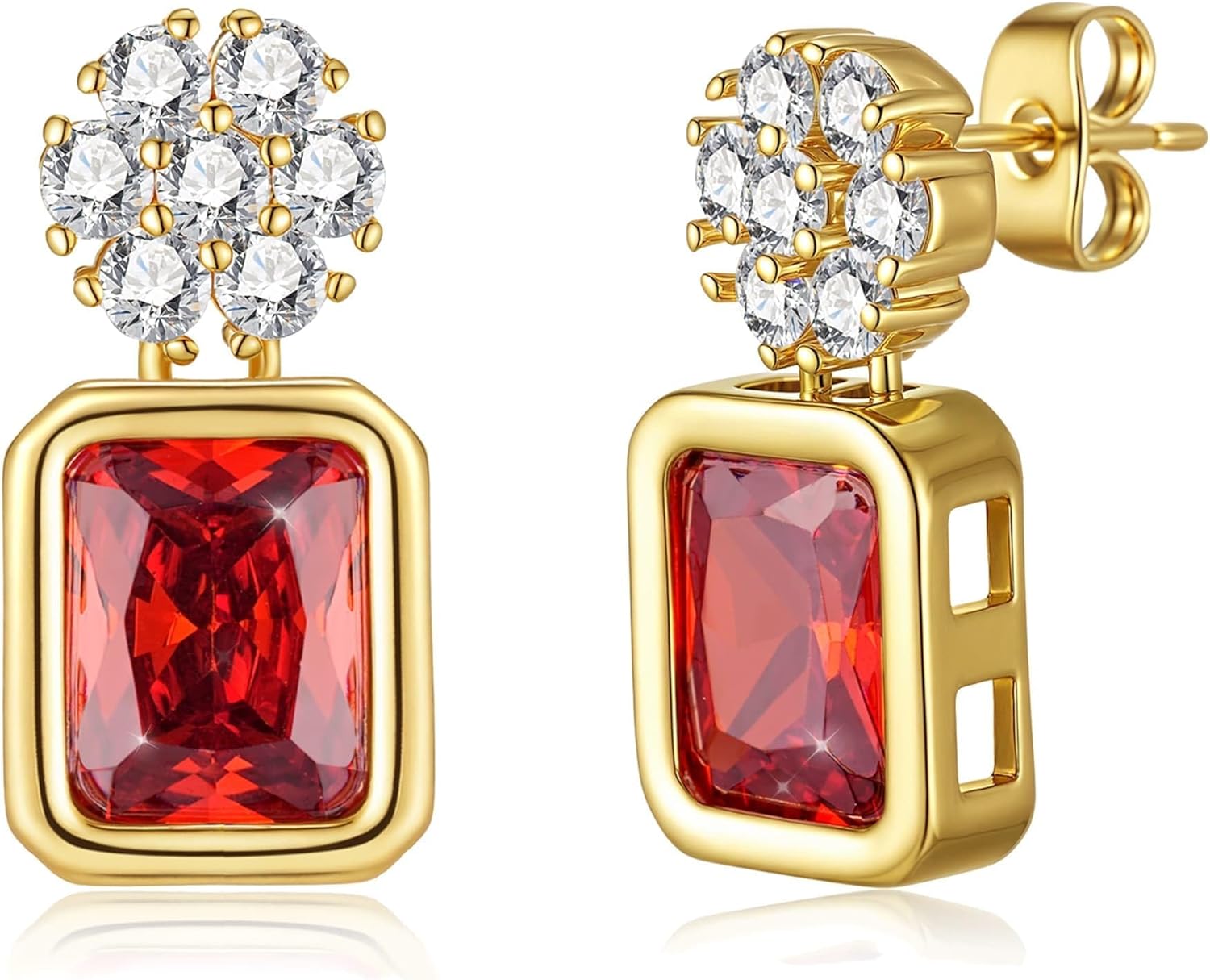 EVEVIC Austrian Crystal Square Drop Flower Studs Earrings for Women 14K Gold Plated Dangle Earring Jewelry Gifts