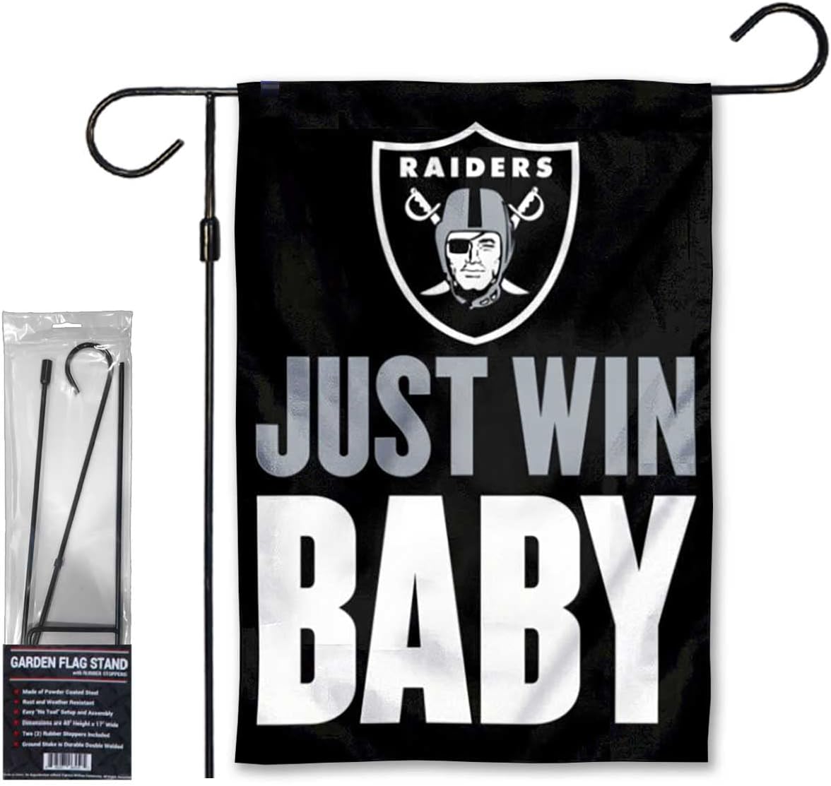 Raiders Just Win Baby Garden Flag and Stand Pole Holder Mount