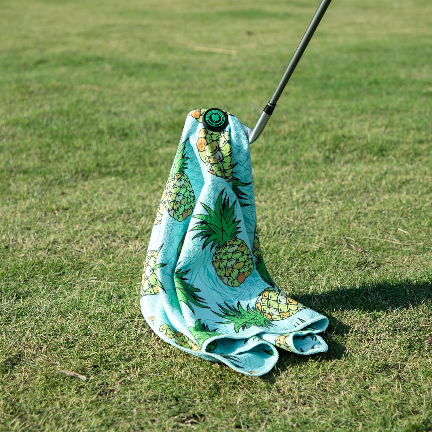 Magnetic Golf Towel for Golf Bags Microfiber Fabric Waffle Pattern Towels for Men or Women, Magnet Golf Towel with Heavy Duty Carabiner Clip Golf Accessories (Pineapple)