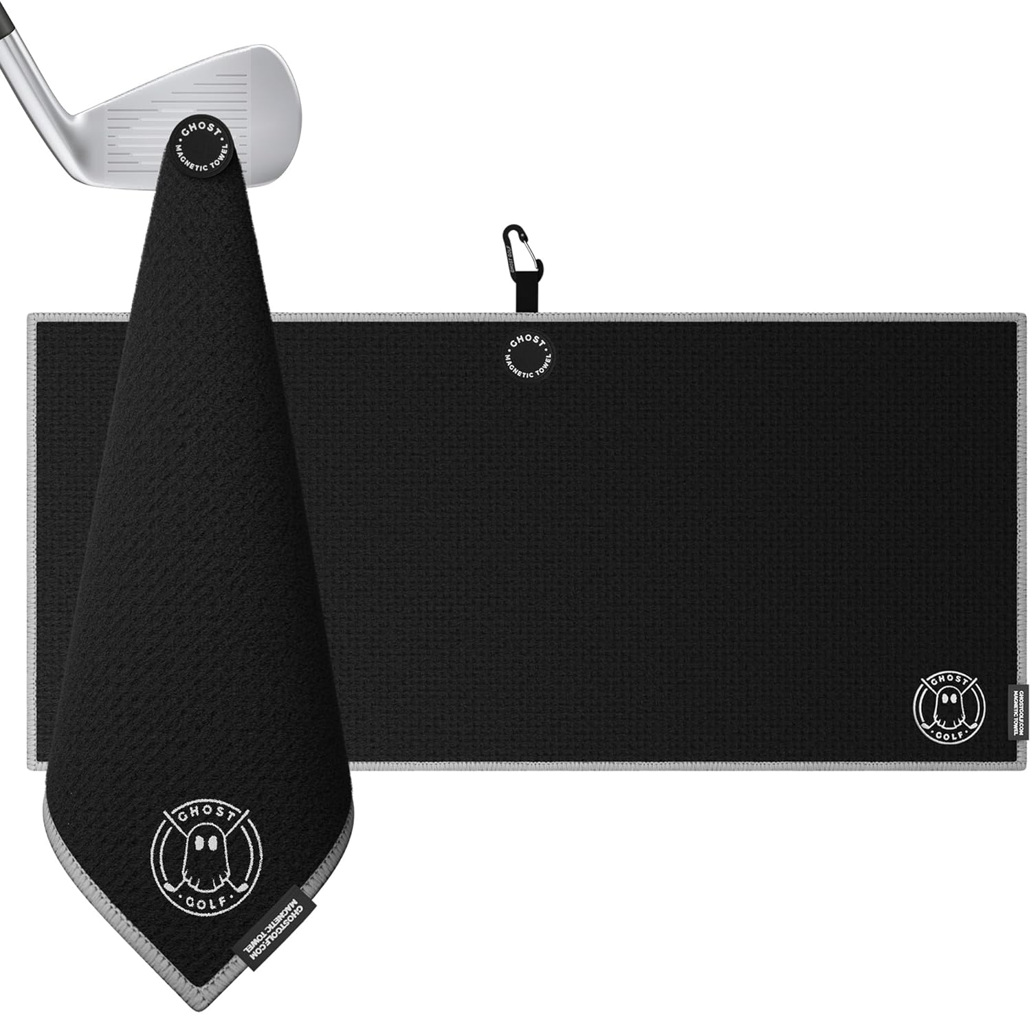 - Your New Sidekick on the Course: Say hello to the original Ghost Golf Magnetic Towel (Caddie), a game-changing towel that will elevate your golf game, now available in a bigger size. Our patented design includes a powerful magnet that easily attaches to your golf cart or clubs so it’s always within reach. Color: Black. Dimensions: 18” x 40”.