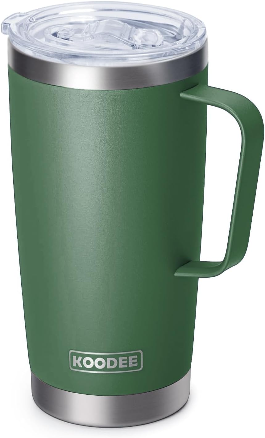 koodee 20 oz Insulated Coffee Mug with Lid and Handle, Stainless Steel Double Wall Vacuum Camping Mug Travel Coffee Tumbler (Grass Green)