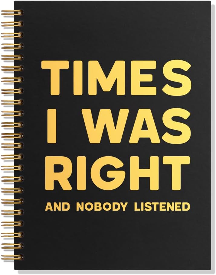 Times I was Right and Nobody Listened Lined Spiral Notebook, Funny 160 Pages Ruled Hardcover Notebook for Work, Sarcastic Office Gifts for Coworker Colleague Secretary, Business Owner Gifts