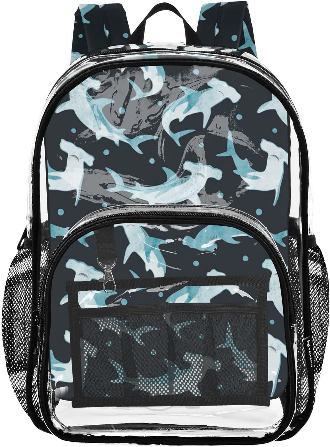 Hammerhead Shark Print Clear Backpack Lightweight Large Capacity See Through Bookbag Transparent Daypack Bag, 12L