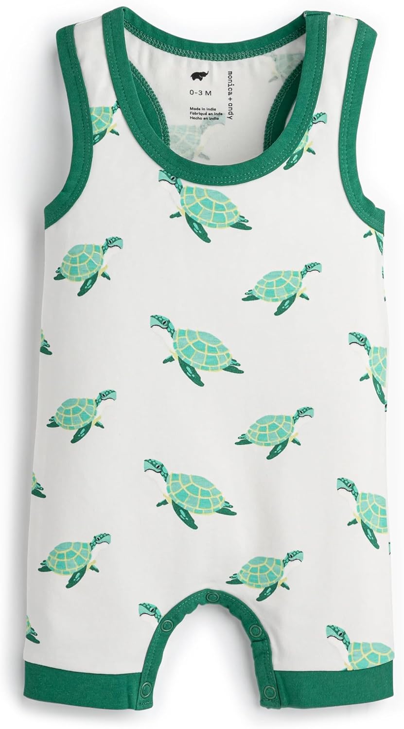 monica + andy Racerback Shortall, 100% Organic Baby Clothes for Boys, Baby Romper, Sizes For Preemie, Newborn & Infant