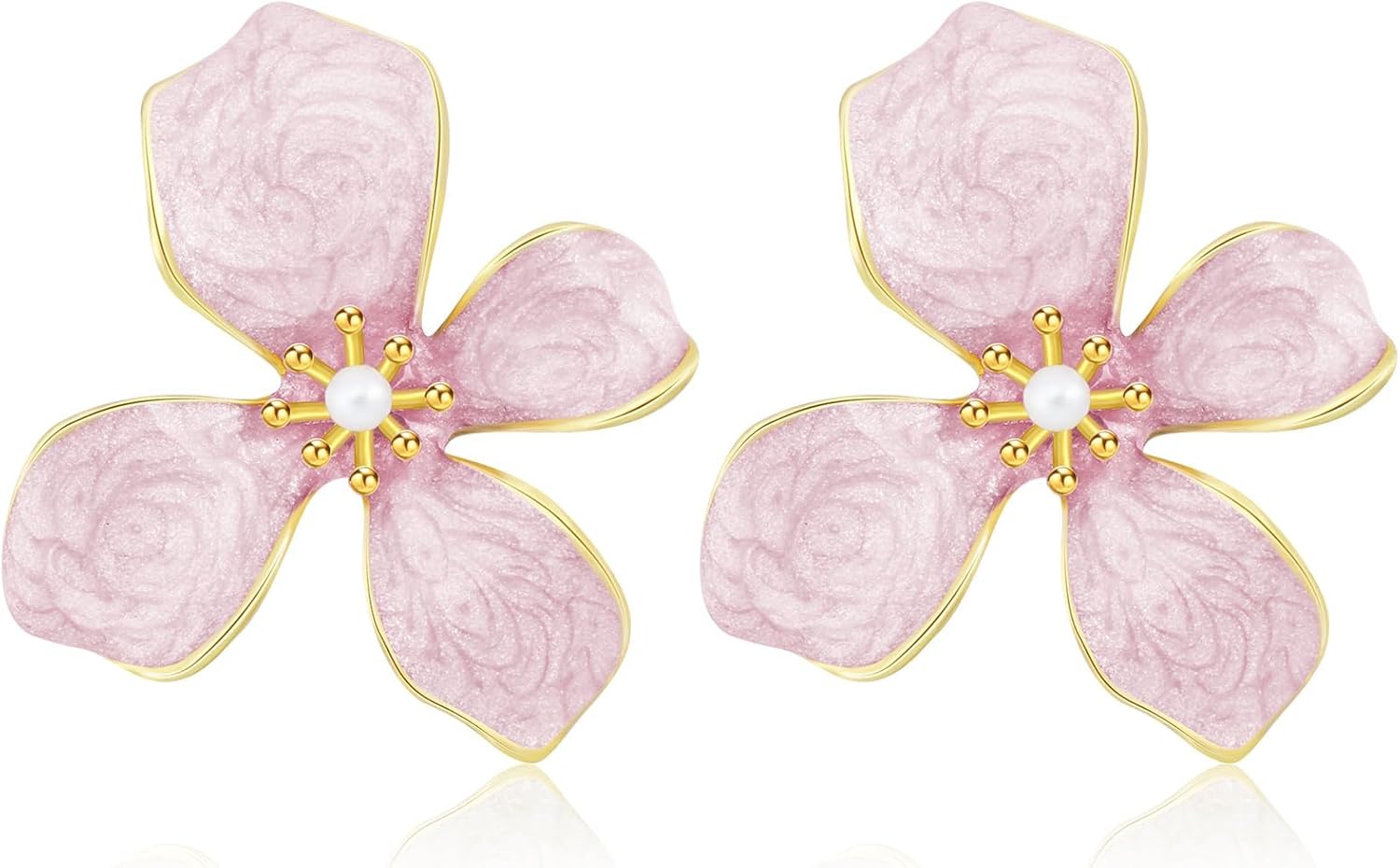 Cute Flower Earrings Pink Vintage Flower Drop Earrings Trendy Fashion Pearl Statement Earrings Chic Elegant Enamel Floral Stud Earrings for Women Mom Holiday Wedding Birthday Jewelry Gift