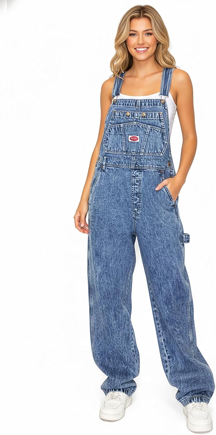 Revolt Women's Juniors Baggy Straight Leg Twill Overalls