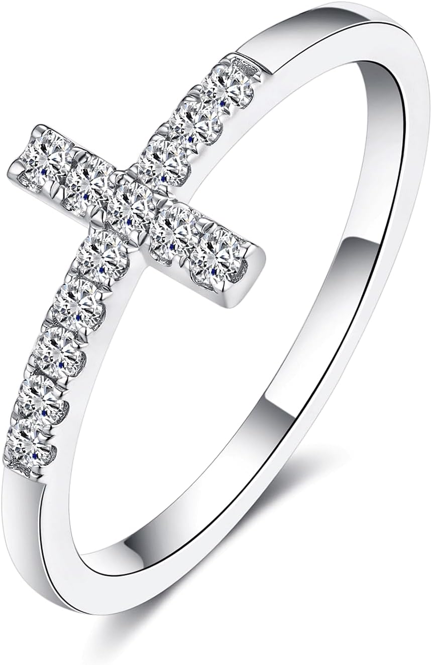 IMOLOVE Moissanite Wedding Bands for Women, Dainty 0.2 Carat Cross Purity Rings for Women Everyday Fashion Silver Moissanite Rings for Women with 18K White Gold Plated Size 4-11