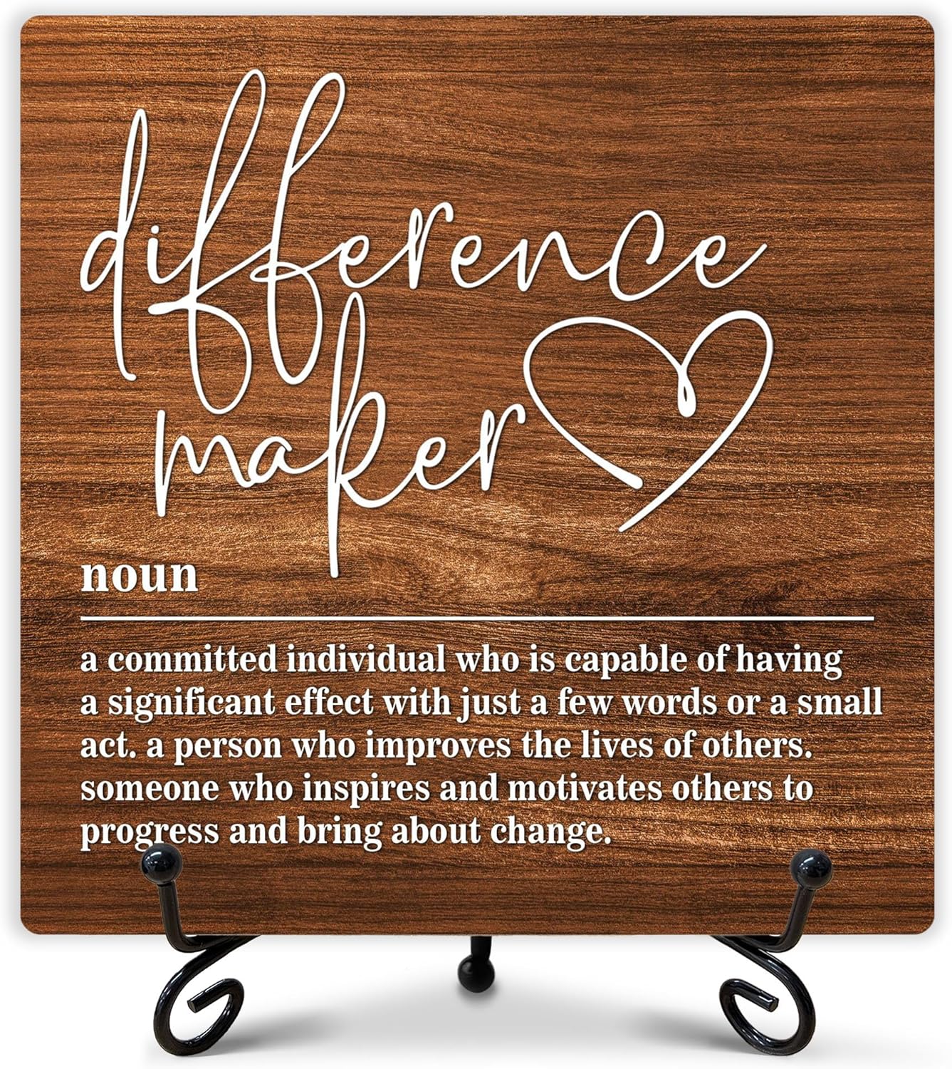 Difference Maker Definition Sign, Home Office Decor, Rustic Farmhouse Decor, Inspirational Quotes Desk Gifts for Women Men Leader Boss Mentor, Office Desk Accessories, 5" x 5"-222