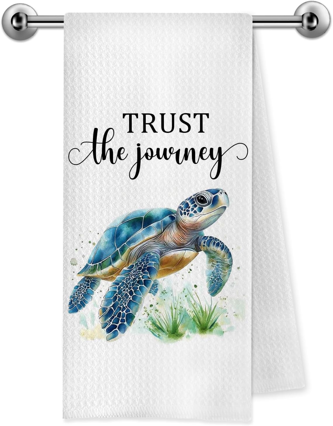 Inspirational Sea Turtle Coastal Beach Kitchen Towels, Ocean Bathroom Decor, Nautical Sea Animal Decorative Dish Tea Hand Towels for Kitchen Bathroom, 16x24 Inch haigui