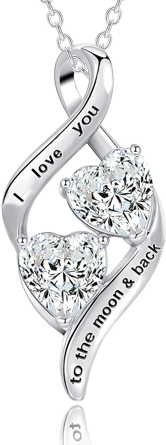 Gifts for Mom from Daughter & Son- Sterling Silver Heart Cubic Zirconia Pendant Necklace for sister/daughter/nana Mother's Day Birthday(with GiftBox)