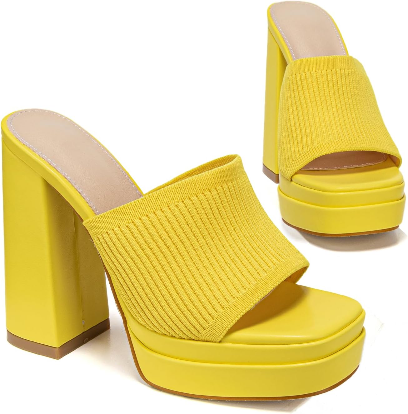 Elegant High Chunky Heel Mule Sandals for Women Chic Platform Summer Slip-Ons Block Heel Wedge Shoes with Knit Upper Fashionable Dressy Evening Party Shoes
