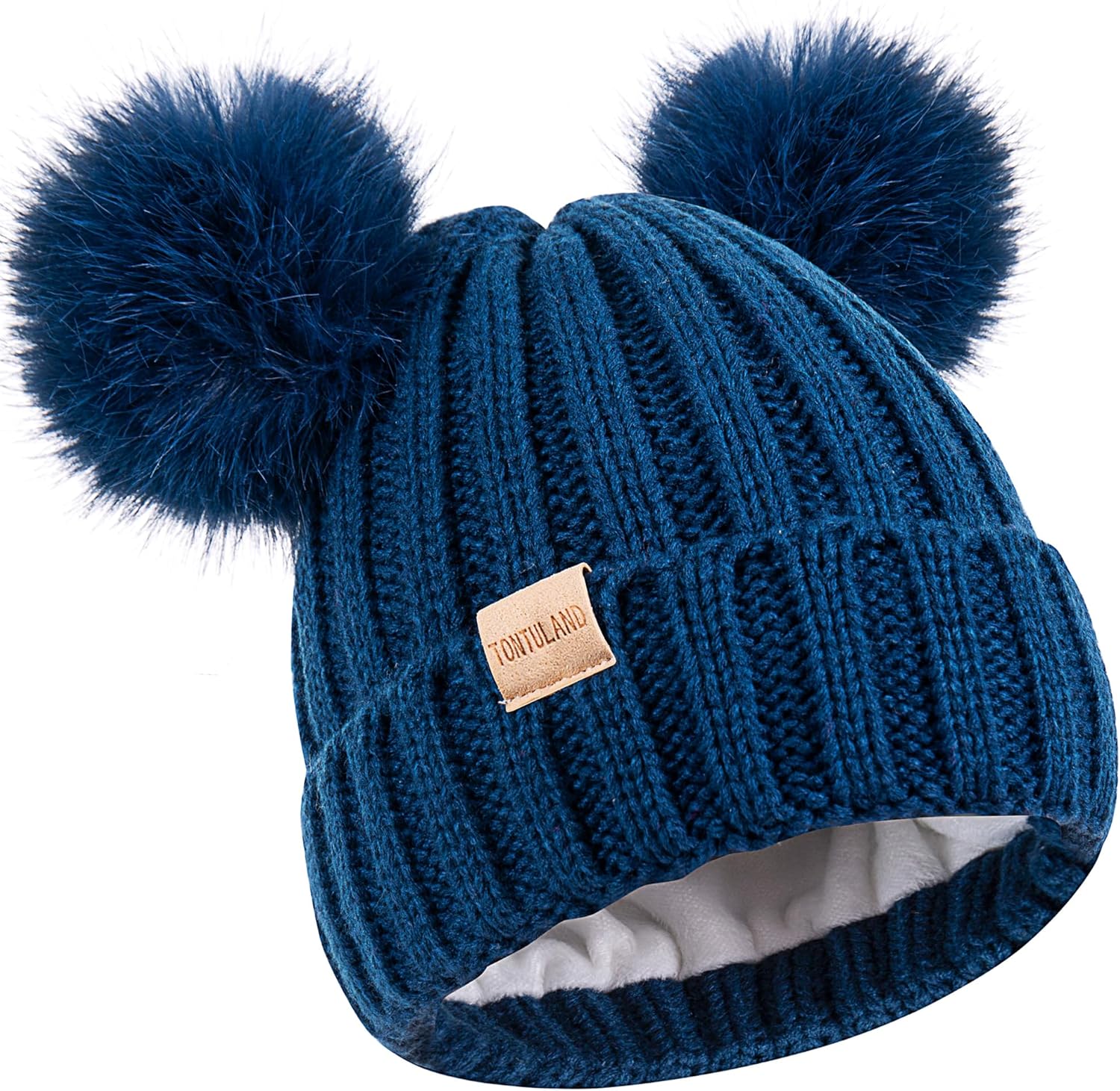 Kids Winter Beanie Hat Warm Ski Caps with Pompom Fleece Lined Children's Knit Hat for Boys Girls