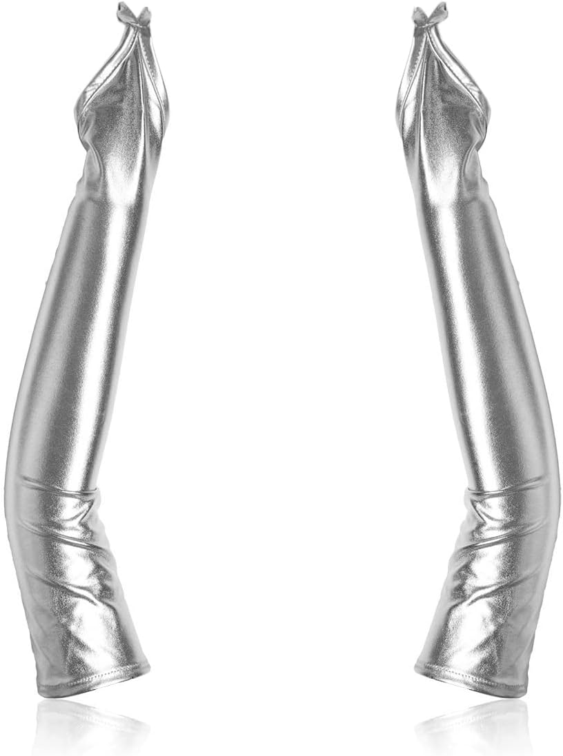 Huralona Womens Long Metalic Satin Gloves Sexy Wet Look Elbow Length Gloves for Evening Party Costume Cosplay Night Club
