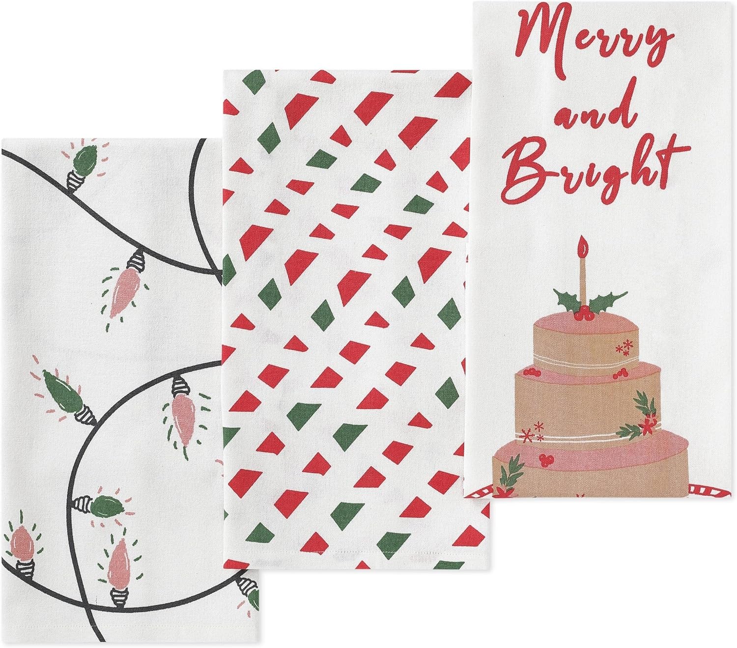 Folkulture Christmas Kitchen Towels Set of 3 | 100% Cotton 20" x 26" Tea Towels & Dishcloths | Modern Farmhouse Holiday Kitchen Décor | Soft & Absorbent Dish Towels | Christmas Cake Pink