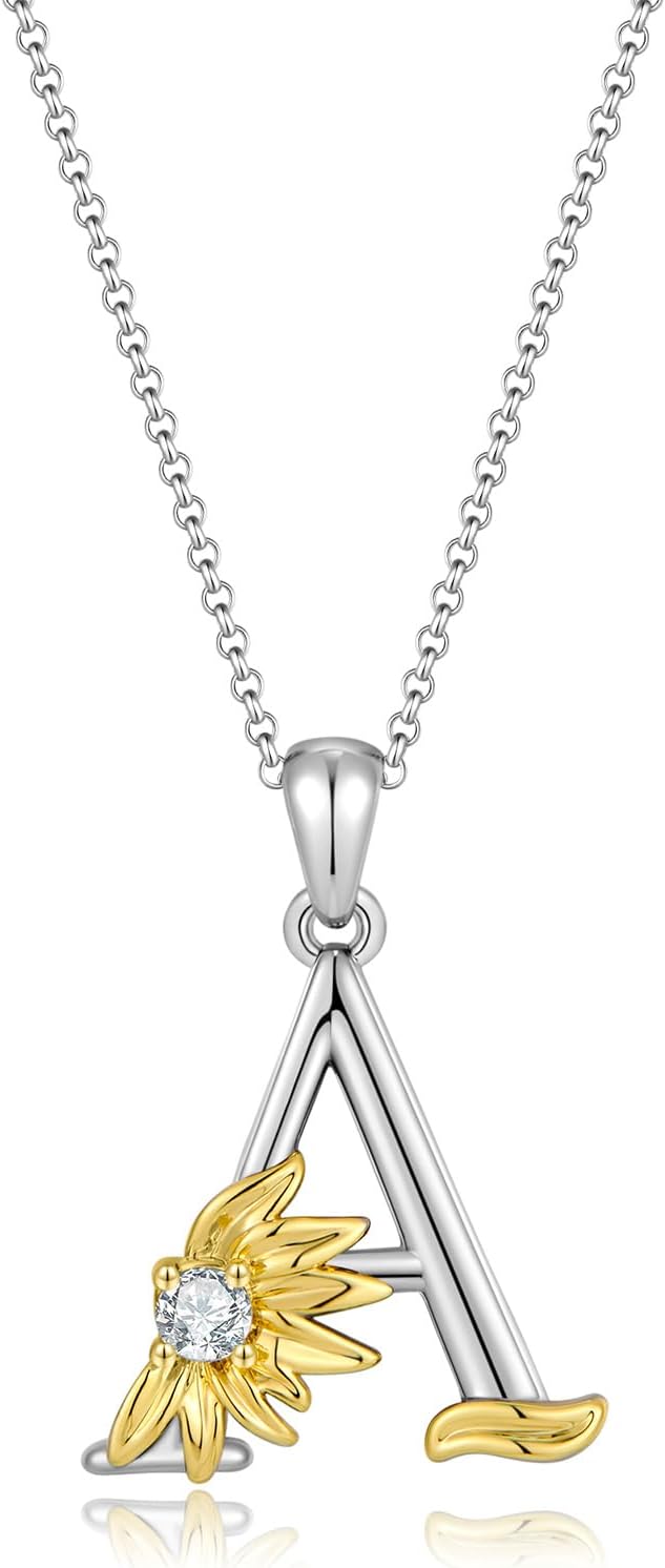 Gold Initial Sunflower Necklace for Women - Letter Pendant Jewelry Gifts