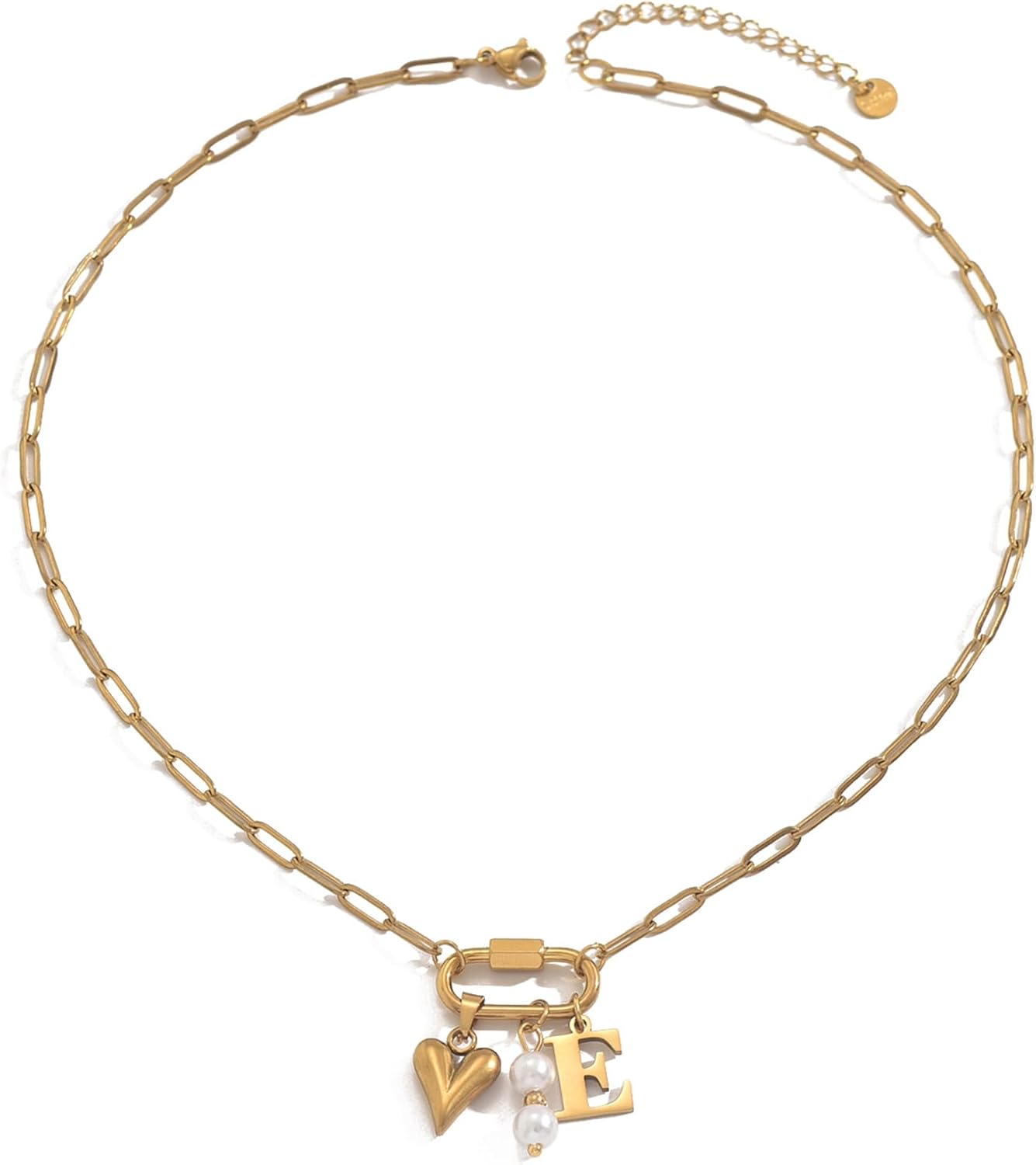 Gold Heart Initial Necklaces for Women 18K Gold Plated Dainty Pearl Letter Necklace Personalized Monogram Name A-Z Pendant Everyday Jewelry for Women