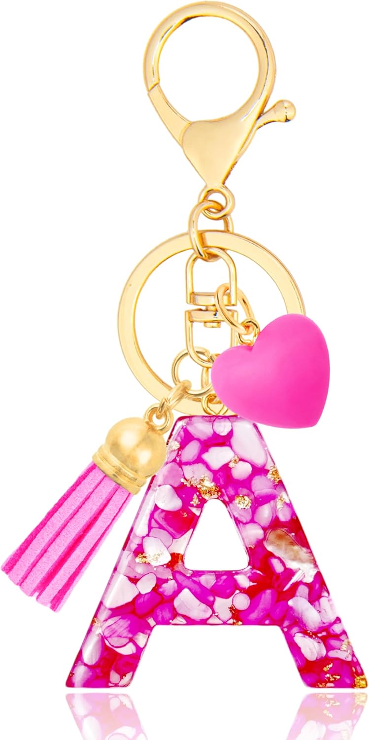Initial Keychains for Women with Cute Heart Resin - Alphabet Letter Keychain for Bag, Backpacks, Purse or Car key