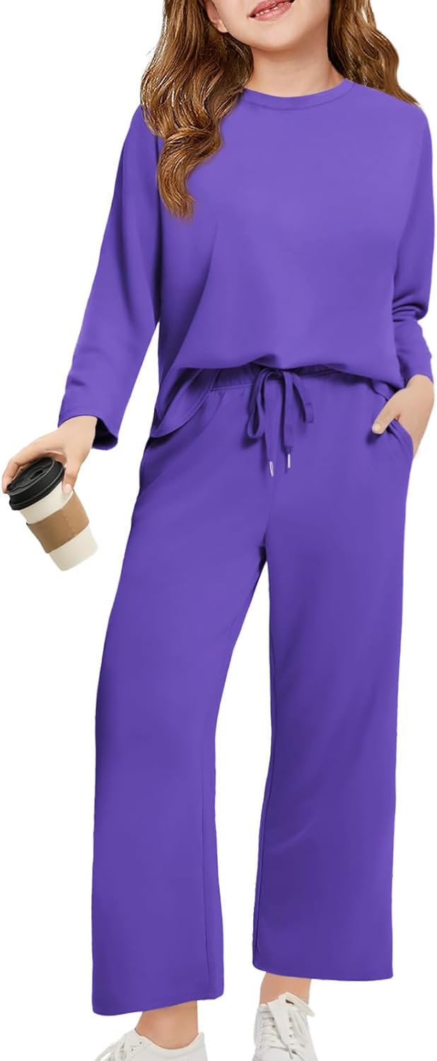 Haloumoning Girls Sweatsuit Kids Fashion Long Sleeve Sweatshirt and Wide Leg Pants Tracksuit Sets 2 Piece Outfits