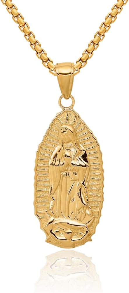 IceCarats 14K Solid Yellow Gold Our Lady of Guadalupe Virgin Mary Oval Disc Necklace Virgencita Maria Rosa Pendant Catholic Christian Holy Mother Medallion Charm