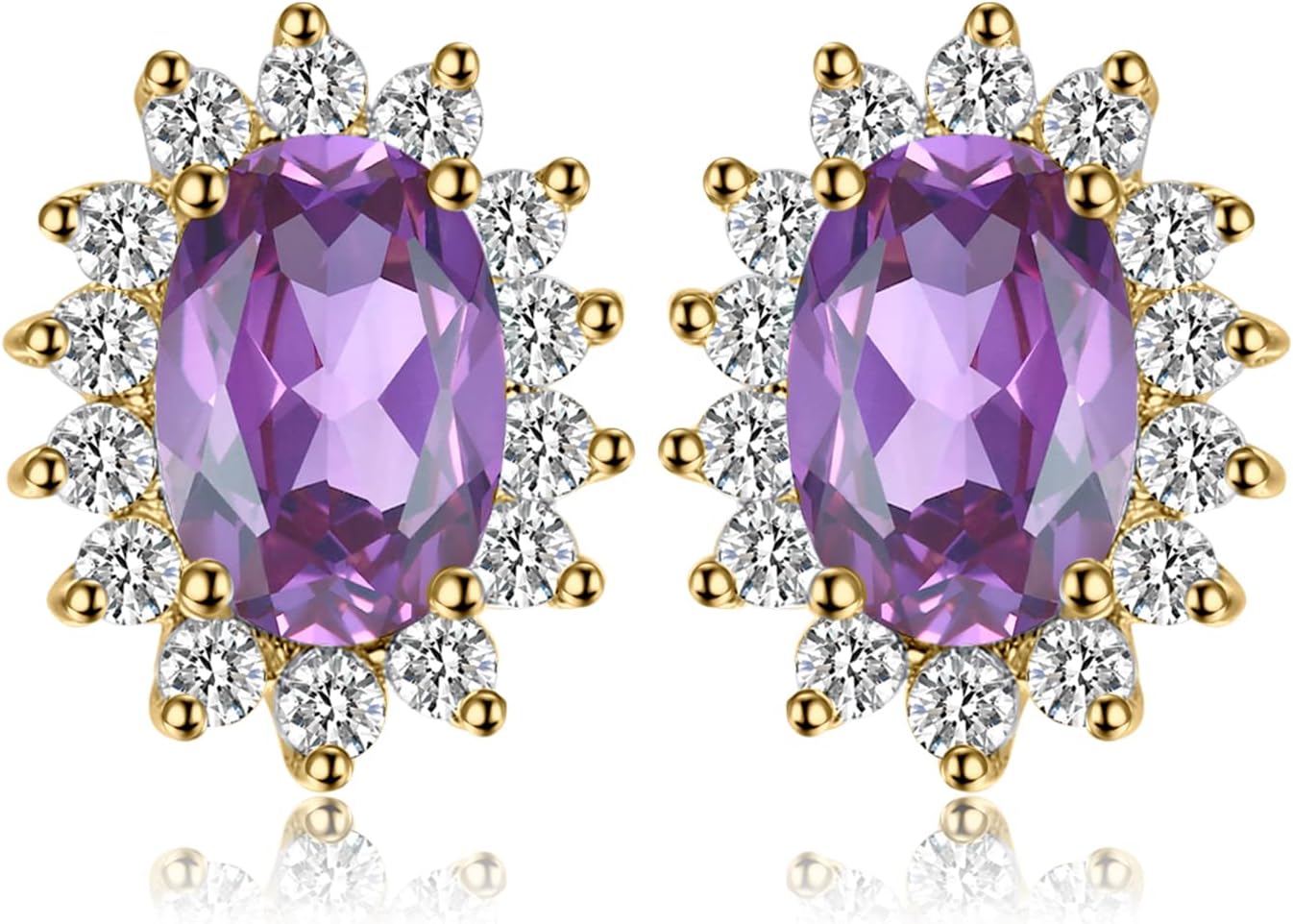 JewelryPalace Princess Diana Kate Middleton Class Gemstone Birthstone Sapphire Emerald Ruby Stud Earrings for Women, 14k Yellow Gold Plated 925 Sterling Silver Earrings for Women, Earings Set