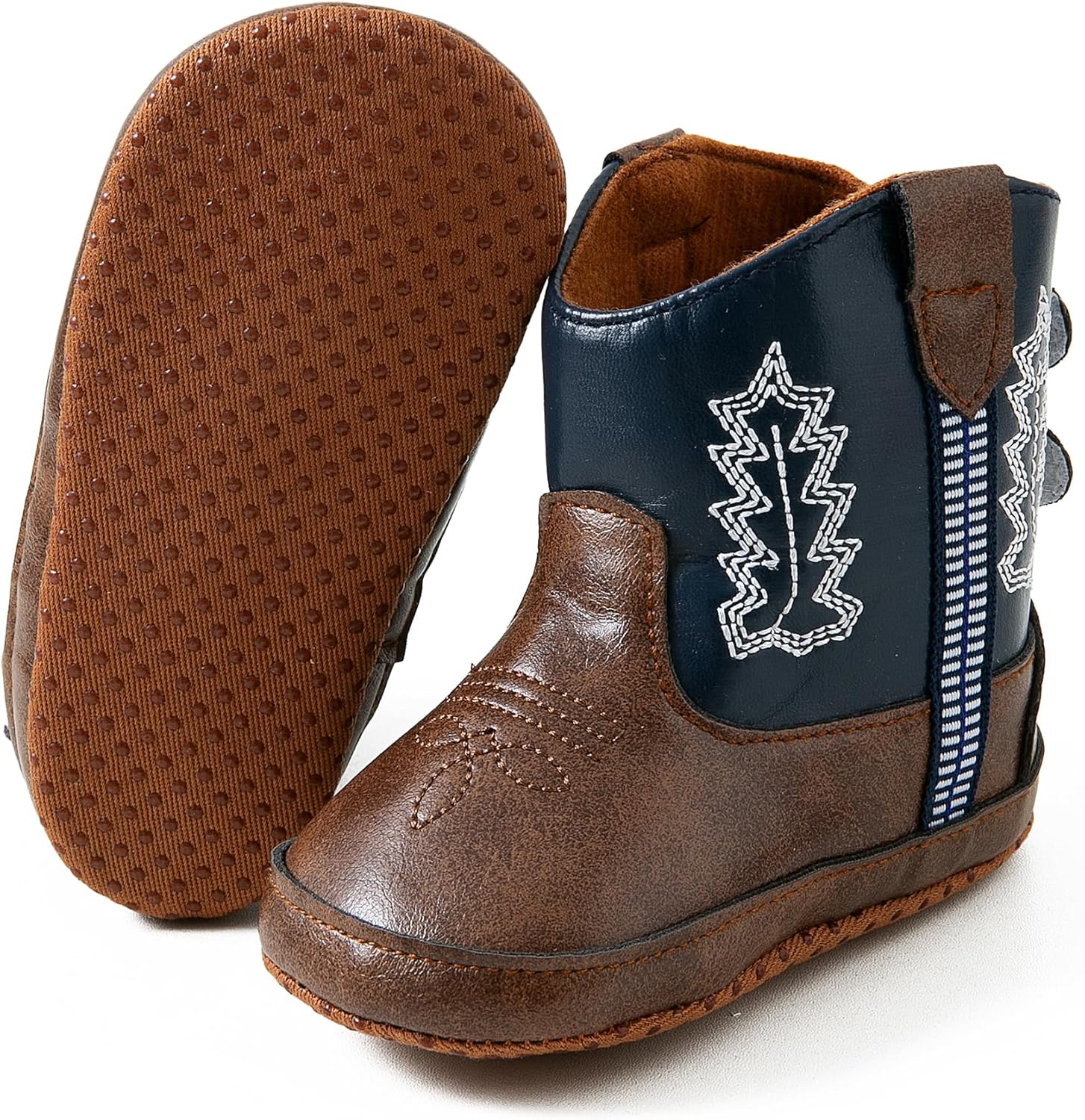 Jastore Leather Western Boots Cowboy Bootie Soft Sole Non-Slip Crib Shoes for Baby Infant Toddler